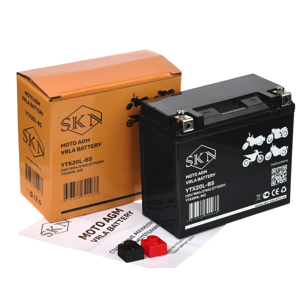 Аккумулятор стартерный для мототехники SKN YTX20L-BS (12V/18Ah/270A) [CT 12201, YTX20HL-BS]